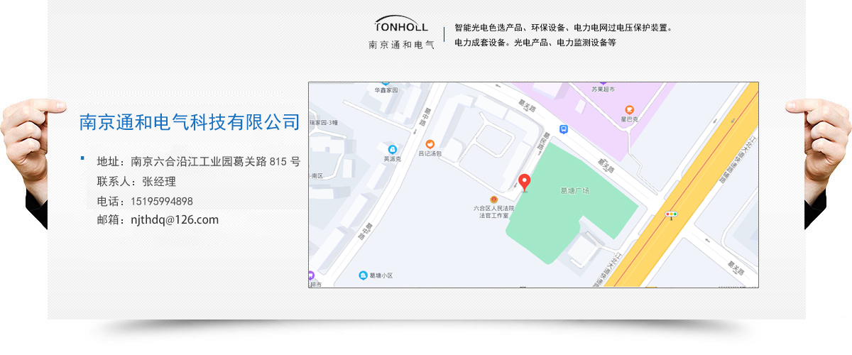 南京通和電氣科技有限公司是致力于研發(fā)、 生產(chǎn)防雷產(chǎn)品的科技型企業(yè)。公司集研發(fā)、生產(chǎn)、銷(xiāo)售、服務(wù)為一體,目前主要產(chǎn)品為:智能光電色選產(chǎn)品、環(huán)保設(shè)備、電力電網(wǎng)過(guò)電壓保護(hù)裝置。電力成套設(shè)備。光電產(chǎn)品、電力監(jiān)測(cè)設(shè)備等。公司秉承“誠(chéng)信。創(chuàng)新、和諧。卓越”的經(jīng)營(yíng)理念,研發(fā)創(chuàng)新的專(zhuān)業(yè)態(tài)度服務(wù)客戶(hù),追求卓越,以其高水準(zhǔn)的產(chǎn)品品質(zhì)和良好的企業(yè)信譽(yù),在發(fā)展進(jìn)程中得到了社會(huì)廣泛認(rèn)可。
